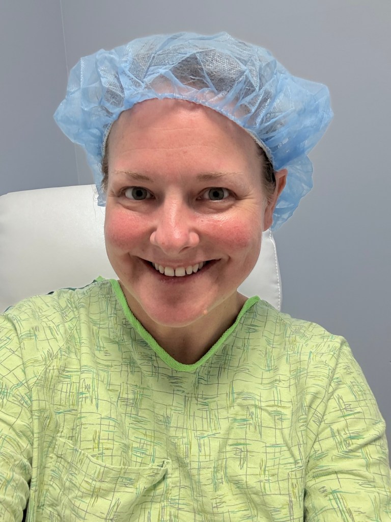 Hairnet in place, rocking a hospital gown, I waddled to the OR where the team zip-bang-boomed a small repair. We chatted about scuba diving and argued over the playlist — I settled on “We’ve Got Tonight” by Kenny Rogers and “Rocket Man” by Elton John. Fitting…