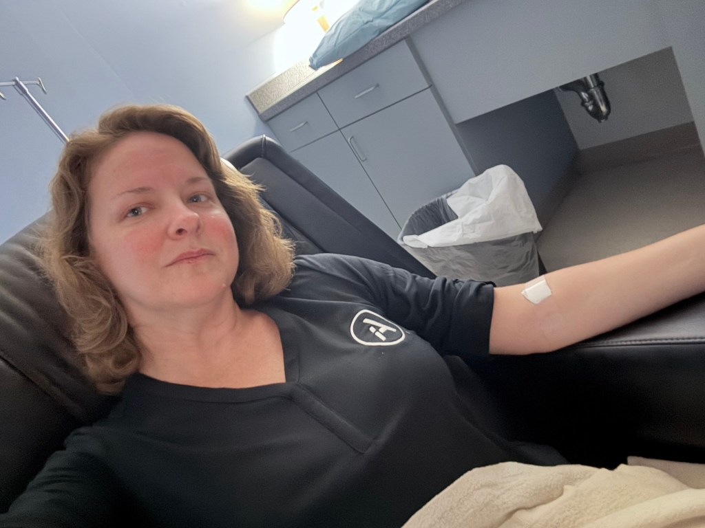 After 24 hours with no carbs and no sugar (Brooklyn Pickle lunch = cheese, salami, green peppers), I was injected with a radioactive substance shipped in a steel box from our state capital. “We only have one,” the tech told me, tucking me in with a warm blanket. No pressure. Then an hour of sitting still before sliding into the transformation chamber — half an hour of scanning, arms above my head, like reverse flying.